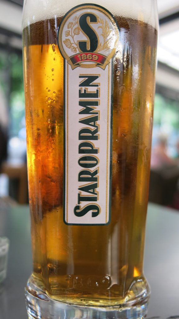 Prag är den lilla stora staden. Allt är samlat inom bekvämt promenadavstånd som en förstagångsturist i staden vill beskåda, särskilt om man som vi gjorde, bor i den Gamla staden. I Prag mötte vi ordentligt den stora turistströmmen, särskilt när vi gick längs med huvudgatan genom Gamla Stan mot Karlsbron, för alla måste ju gå till Karlsbron och gå över den minst en gång när man är där. Det går att gå omkring i Gamla Stan länge och förvirra sig bort i de smala gränderna och hela tiden upptäcka nya fina gamla hus i ljuvliga färger med underbara fina utsmyckningar på. Tjusningen med Prags Gamla stadsdel är också alla restauranger och caféer. Även här, precis som i Budapest, så ligger det historiska gamla slottsområdet, Pragborgen, på andra sidan floden uppe på berget. Väl värd uppe i Pragborgen har du en underbar utsikt över staden.