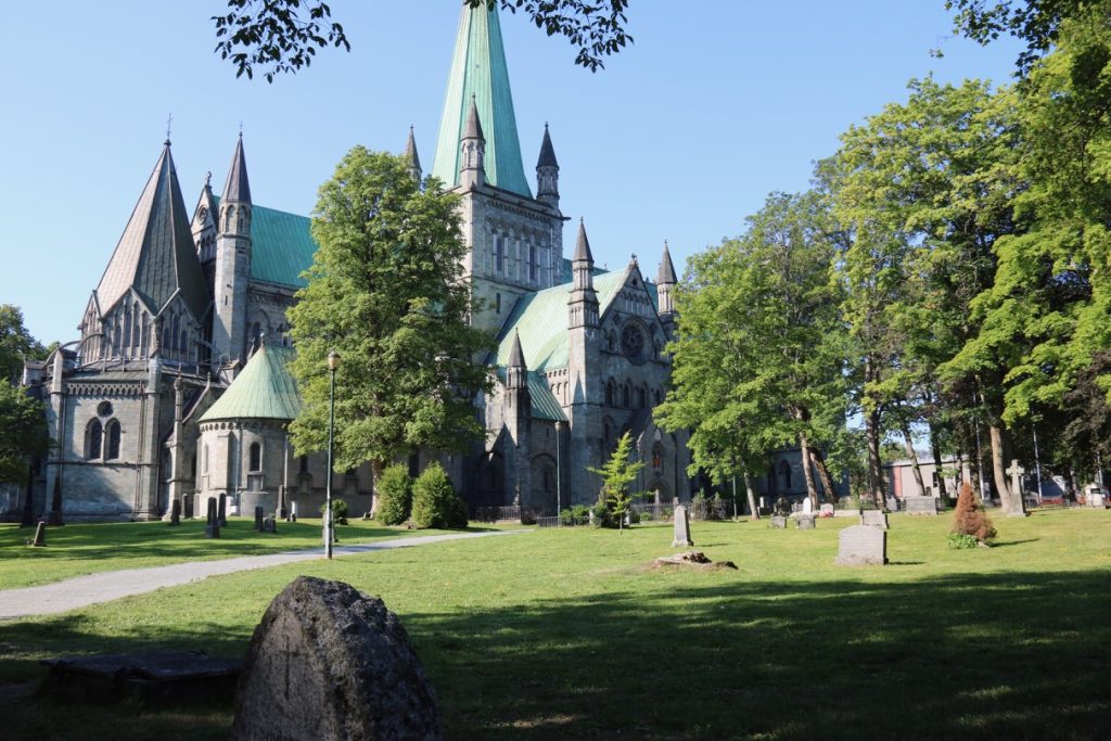 Nu är vi nästan framme vid Nidarosdomen, Nordens äldsta Gotiska katedral, påbörjad någon gång på 1200-talet eller så. Förste person att äras med en ståndsaktig begravningsplats inne i kyrkan är visst Olaf den Helige, en av Norges första kungar. Han är också Norrköpings skyddshelgon vilket föranleder oss att ta ett besök inne i kyrkan.